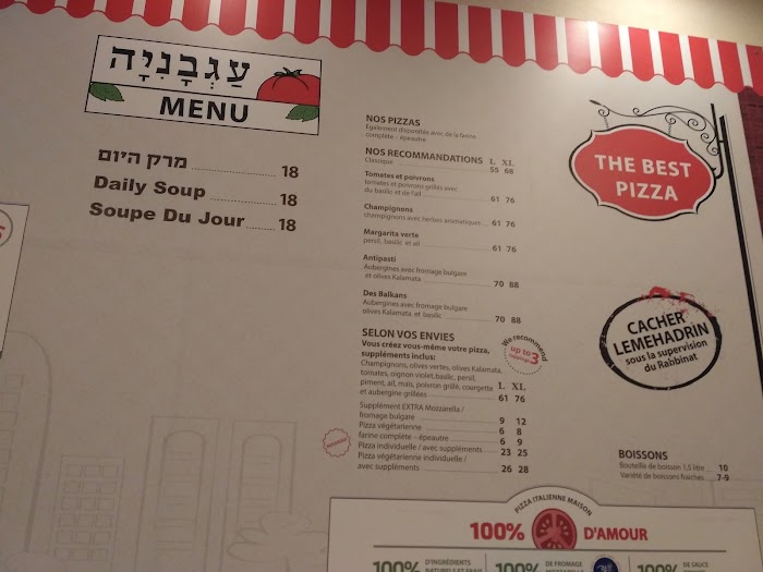 התפריט במקום כולל מבחר אפשרויות המתאימות לארוחה משפחתית, מפגש חברים או עצירה מהירה לאורך היום. הפיצות נאפות בטמפרטורה גבוהה המעניקה לבצק את המרקם המדויק, כאשר לצדן ניתן למצוא לרוב תוספות מגוונות לבחירה.