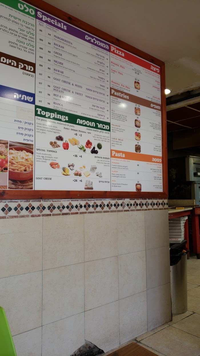 התפריט במקום כולל מבחר אפשרויות המתאימות לארוחה משפחתית, מפגש חברים או עצירה מהירה לאורך היום. הפיצות נאפות בטמפרטורה גבוהה המעניקה לבצק את המרקם המדויק, כאשר לצדן ניתן למצוא לרוב תוספות מגוונות לבחירה.